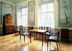Az európai bútorművesség kézműves korszakának legjellemzőbb, legértékesebb bútorai láthatók 28 teremben. A lakókörnyezetet kályhák, csillárok, falkárpitok, szőnyegek, ötvöstárgyak, kerámiák, festmények segítenek felidézni. A kastélymúzeumban az időszaki kiállítások és a különleges rendezvények