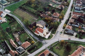 Jellegzetes román elem a bélletes kapu, amit pillérek tesznek hangsúlyossá. A pilléreken szobrok állnak, a kapu felett erkélyes lezárás. A homlokzaton jellegzetes neoromán vakolatdíszítés fut végig. Az egyszintes torony homlokzatát a romanikára jellemző íves ablakok törik át. A belső is a historizmust idézi. A szentély boltozatának kék egén csillagok ragyognak. Középen szép szabadon álló oltár látható.